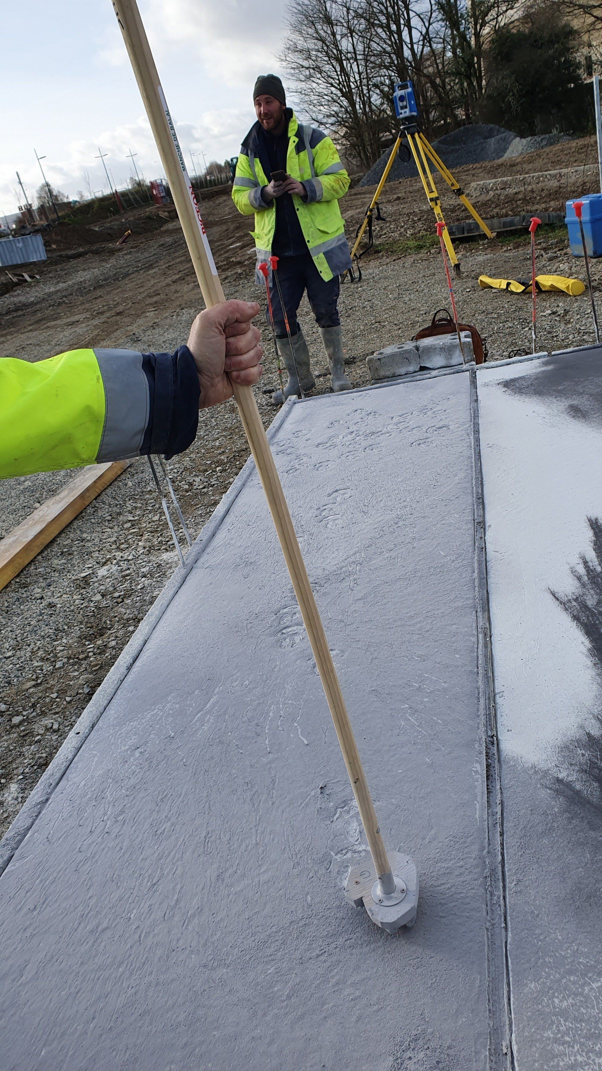 Le béton du Grand Mail Bocager sera réalisé en béton qualitatif clair dont la surface sera polie avec une talocheuse mécanique. La résistance sera voirie lourde. Dans l’esprit de la réalisation sur mesure, liée au génie du lieu, la thématique naturaliste bocagère sera rappelé au sol dans une optique alliant le décoratif et l’écologie.