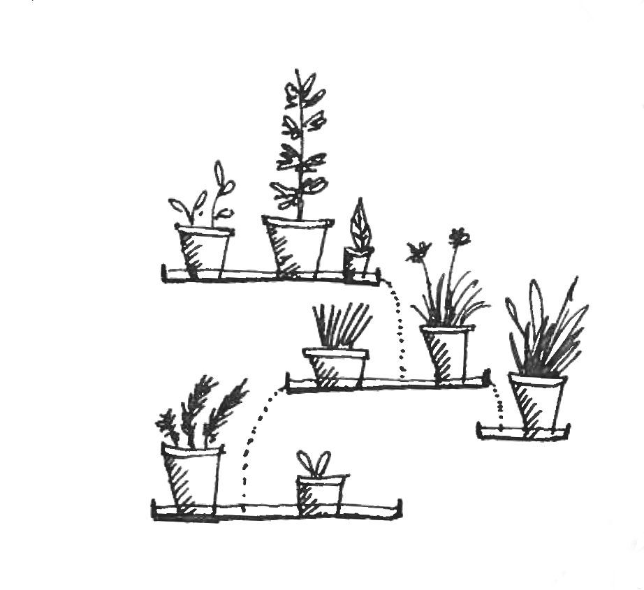 L’ensemble des eaux pluviales de la parcelle convergera au centre dans un bassin paysager dont la forme et le niveau évoluera aux grés des précipitations. Le chemin de l’eau gravitaire sera mis en valeur et se développera dans un cycle de jardinières en réseau qui animera l’architecture étagée.