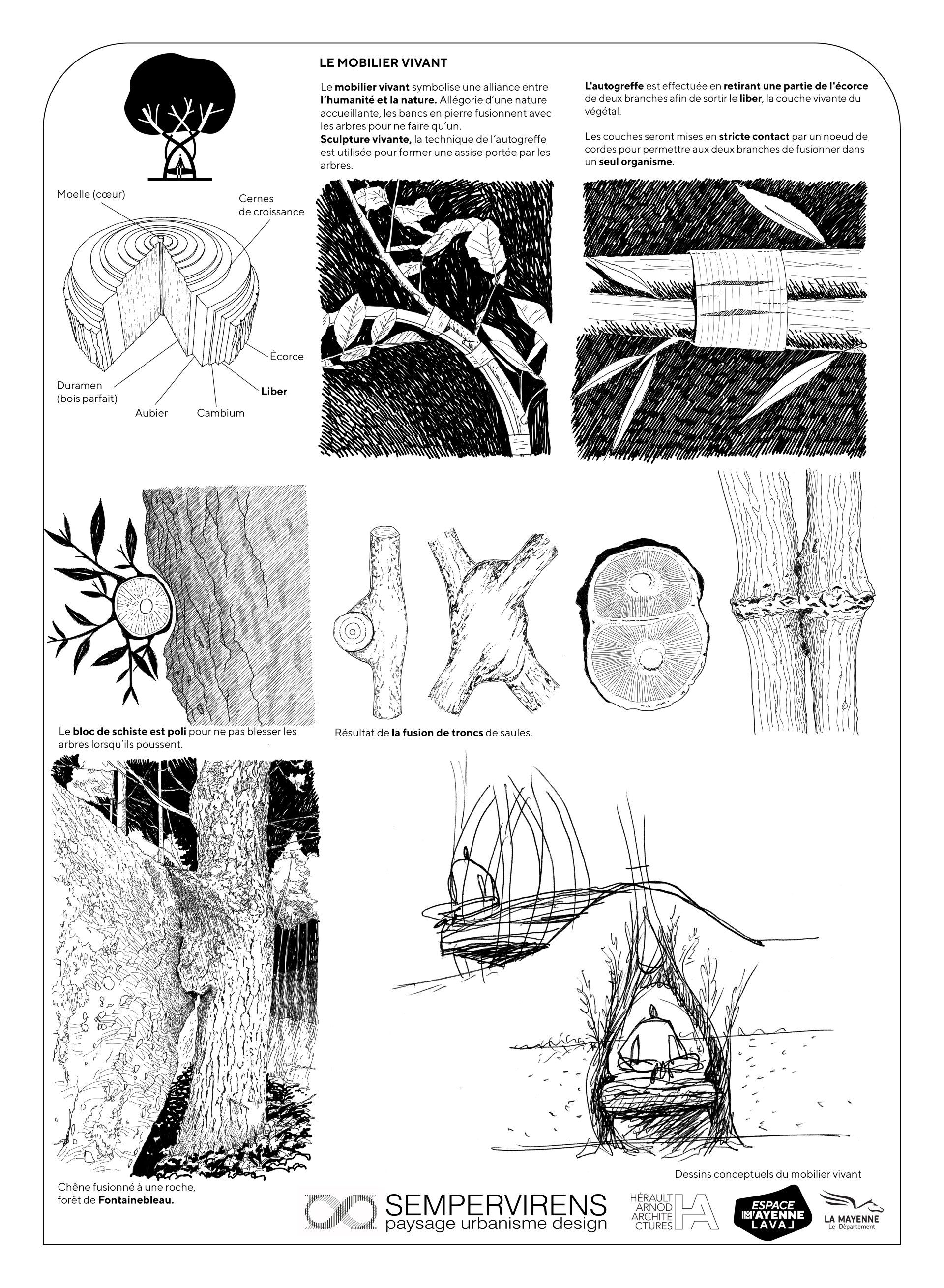 المفهوم: ستشكل ألواح الشست الأساسات المدعومة بالأشجار المحلية كرمز للطبيعة الخيرية.