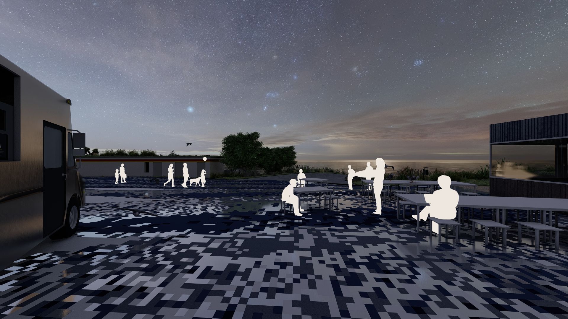 الحق في السواد: بروح بيئية، سيتم تقليص المناطق المضاءة إلى المسارات الرئيسية التي تربط المدخل، والمسار المتصل بمواقف السيارات الجنوبية لـ PRM، والفناء الشمالي والمساحة المركزية. لن يتم إزعاج الحياة البرية بالإضاءة المزعجة.