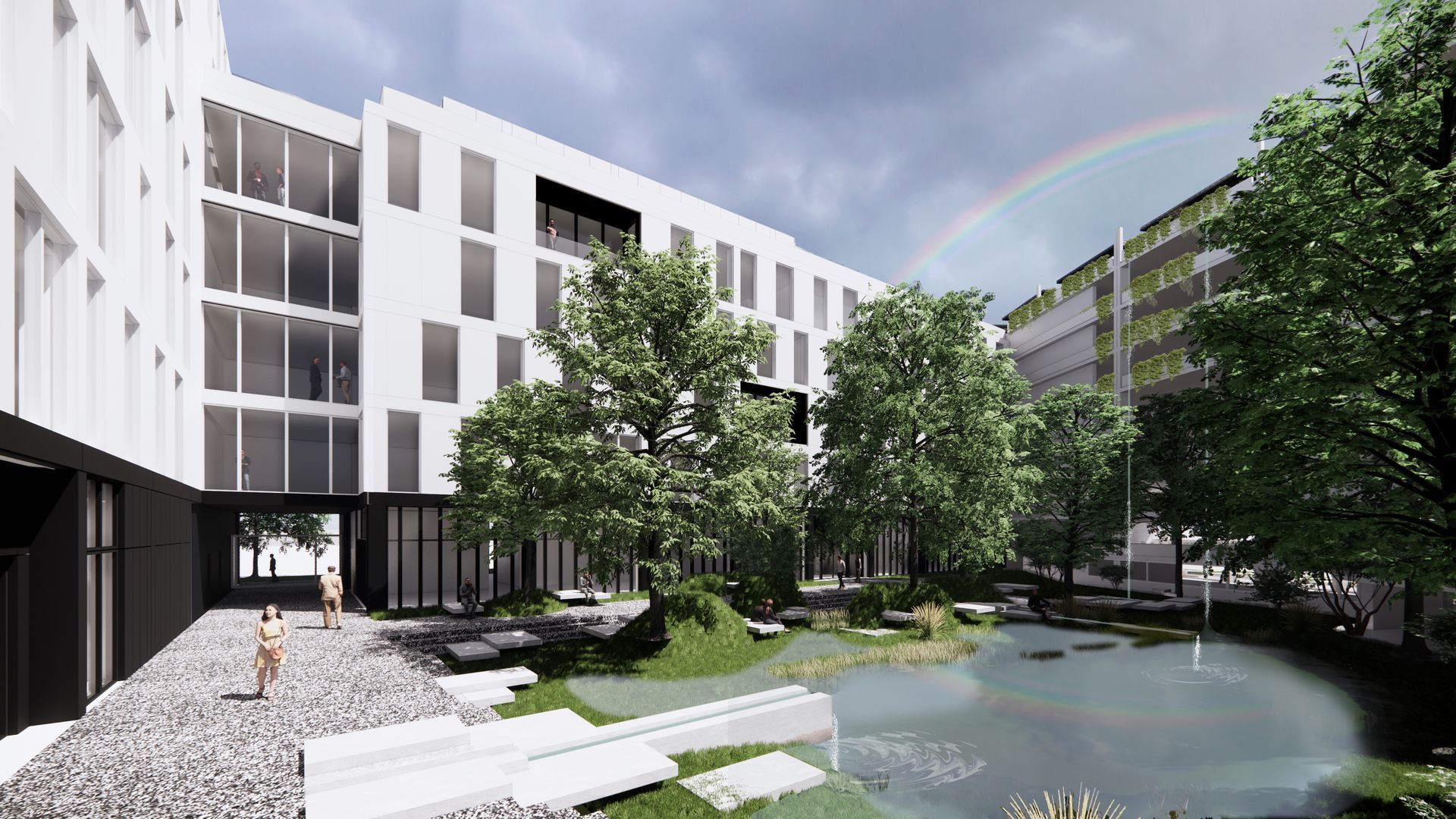 "حديقة نافورة المطر" في بوردو للمقر الجديد لـ CPAM Gironde مع SCAU.