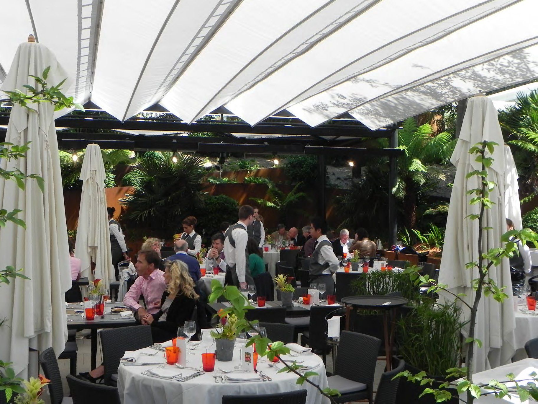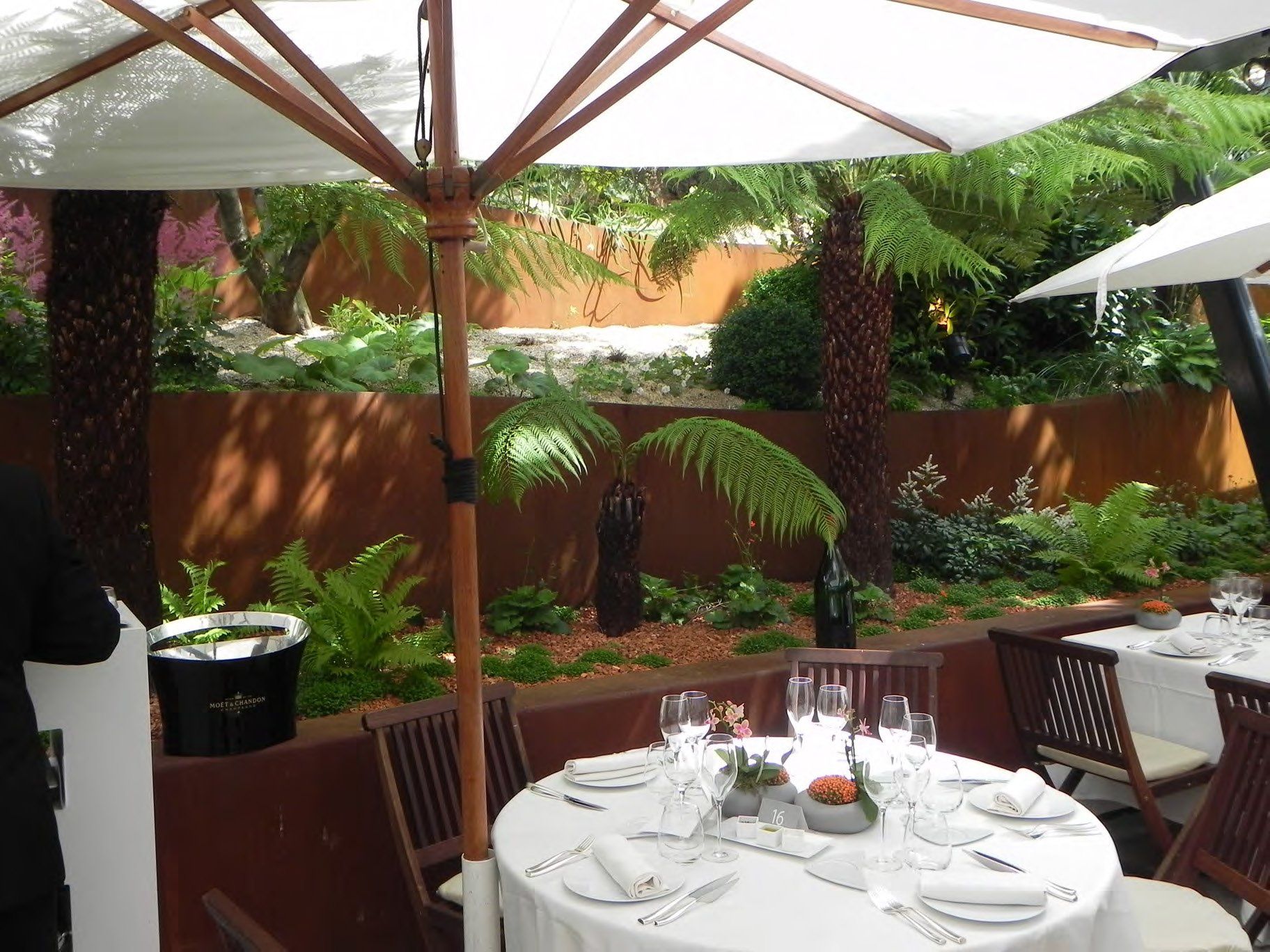تصميم المناظر الطبيعية لتراسات مطعم Club des Loges في رولان جاروس، SEMPERVIRENS Frédéric-Charles AILLET (المدير) Raphaël Favory و Pierre Sarrien