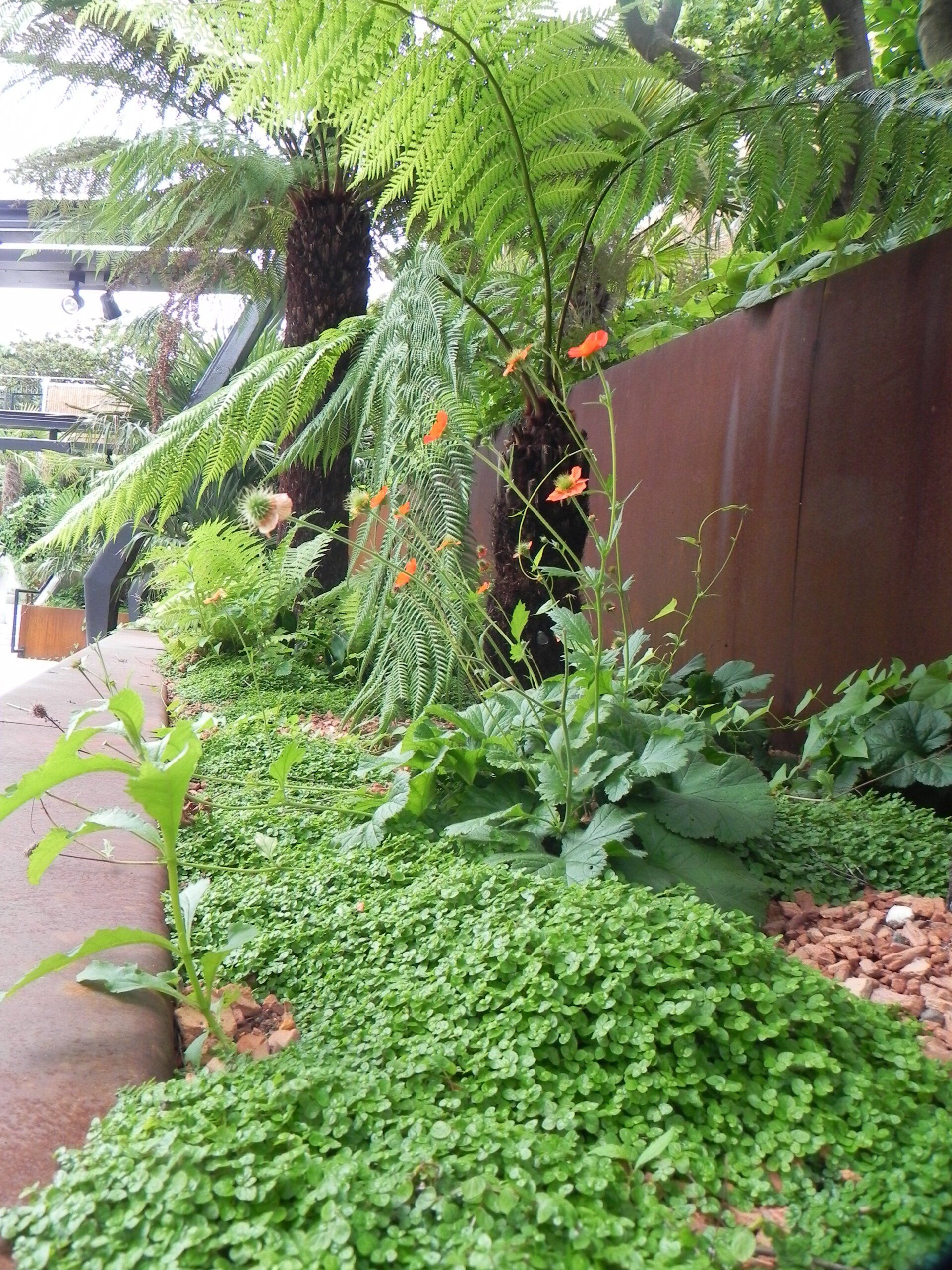 ازدهرت النباتات المعمرة والشجيرات خلال البطولة. تسليط الضوء. تركيب الرذاذ في أعلى المنحدر. تم تصميم المشروع وتنفيذه خلال فترة 8 أشهر دون تجاوز الميزانية.