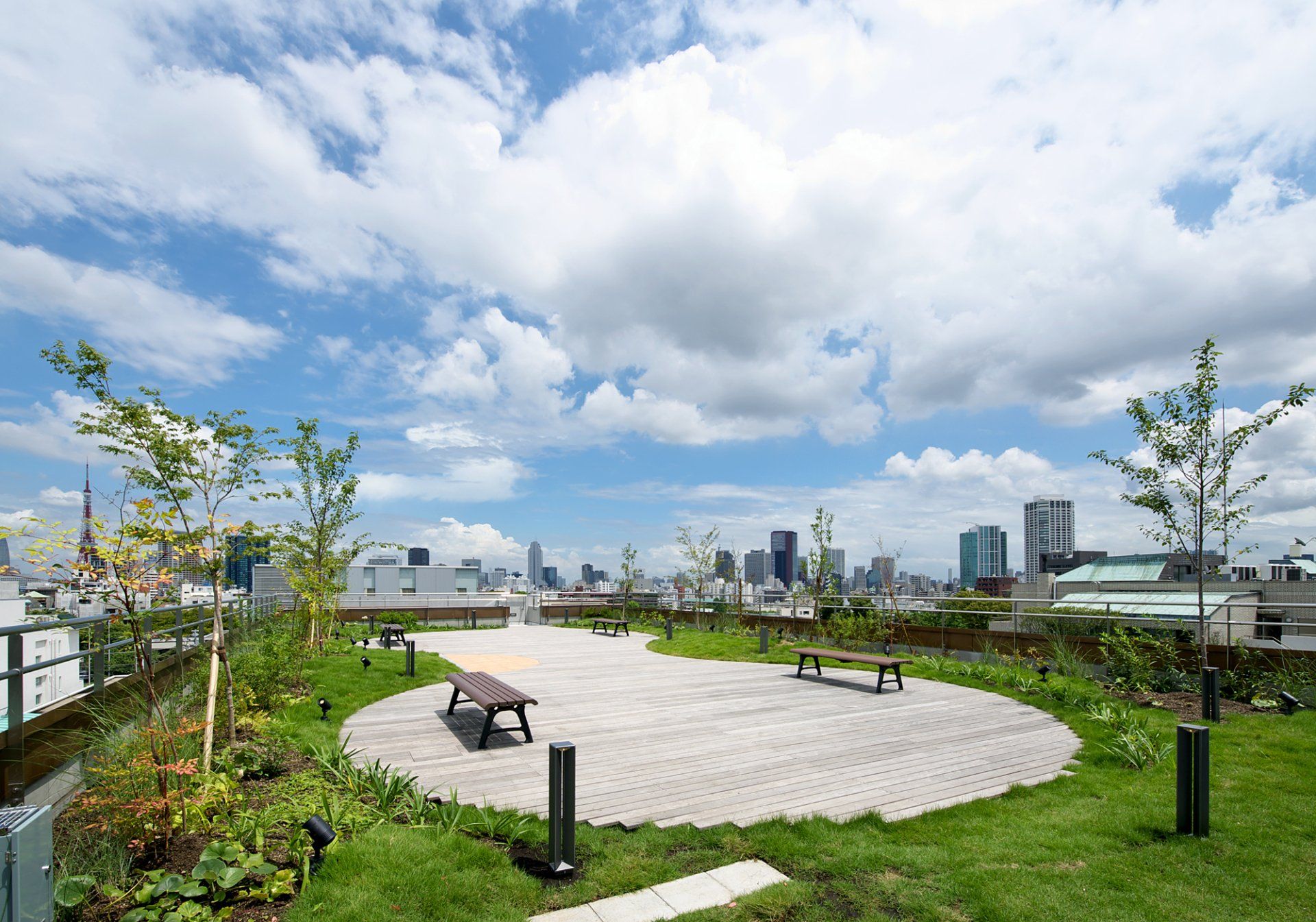 إدارة مياه الأمطار وتنقيتها، نباتات حلزونية (صخر الزيت على الحافة)، تراسات مزروعة بالنباتات المحلية، جدران خضراء منحوتة واسعة، شهادة HQE CASBEE.