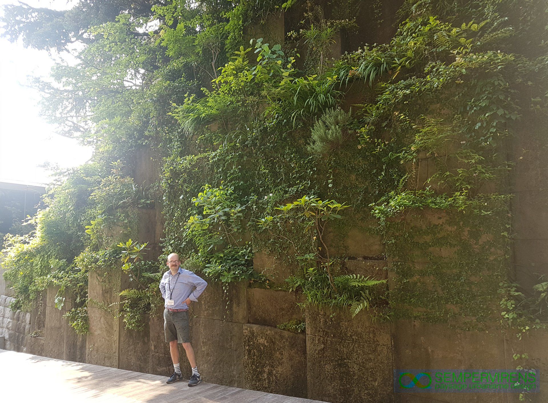 نشأ المشروع من الحاجة إلى إدارة فرق كبير في المستوى بين واجهة المبنى الجديد والأرض الموجودة مع الحد الأدنى من البصمة من أجل الحفاظ على الأشجار الكبيرة جدًا الموجودة. أدى القيد الطوبوغرافي إلى إنتاج عمل عمودي بدا منطقيًا بالنسبة لنا دون الرغبة في إنشاء "جدار". كان الرصد الميداني للبيئات الطبيعية المظللة في طوكيو على طول النهر هو الذي أدى إلى ظهور فكرة جعل الجدار نظامًا بيئيًا حقيقيًا من شأنه أن يجد توازنه بشكل مستقل من خلال الجمع بين جميع الظروف اللازمة للاستعمار من قبل النباتات الرائدة، وخاصة الطحالب (النباتات الطحلبية).