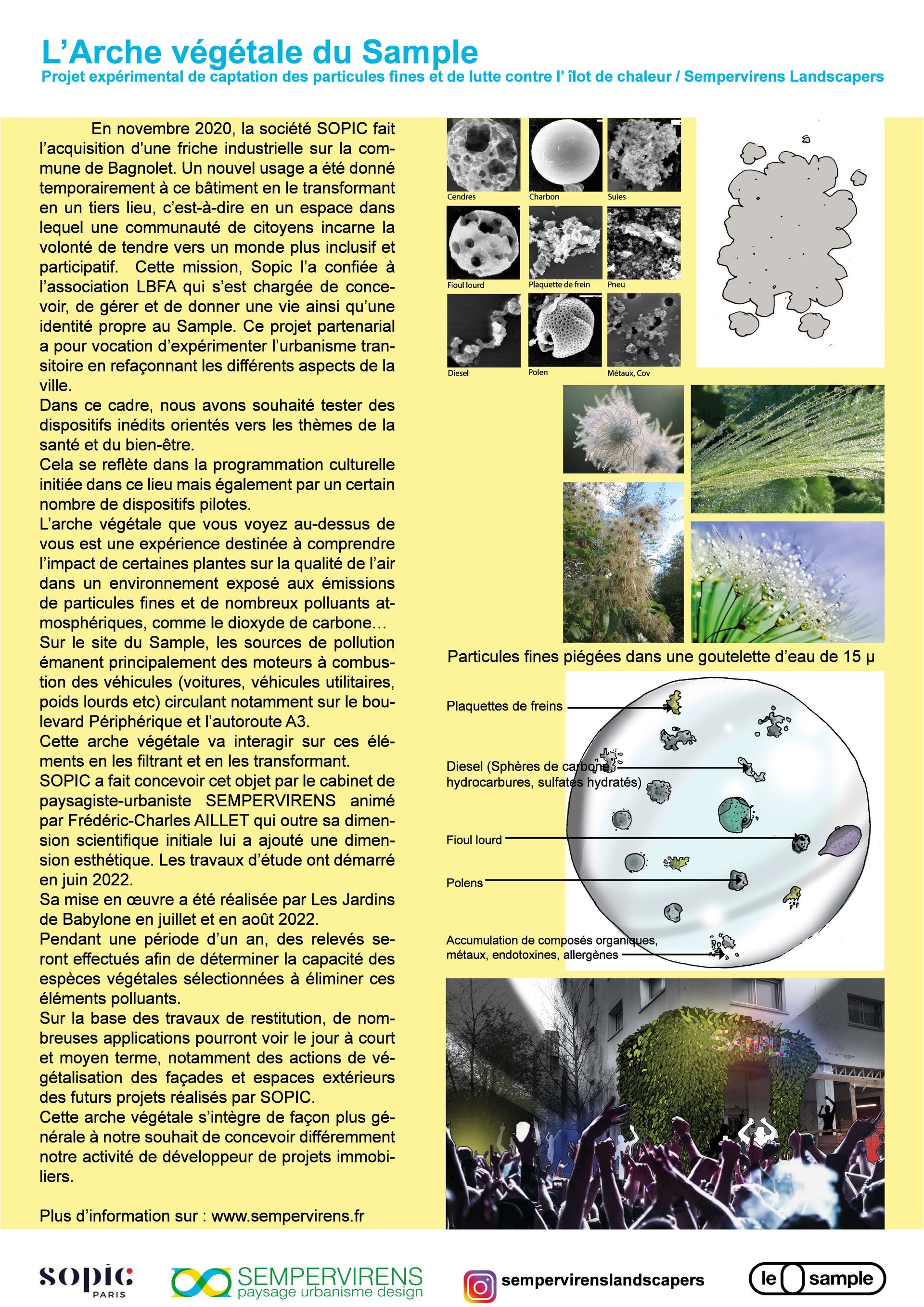 SOPIC a fait concevoir cet objet par le cabinet de paysagiste SEMPERVIRENS animé par Frédéric-Charles AILLET qui outre sa dimension scientifique initiale lui a ajouté une dimension esthétique. Les travaux d’étude ont démarré en juin 2022.