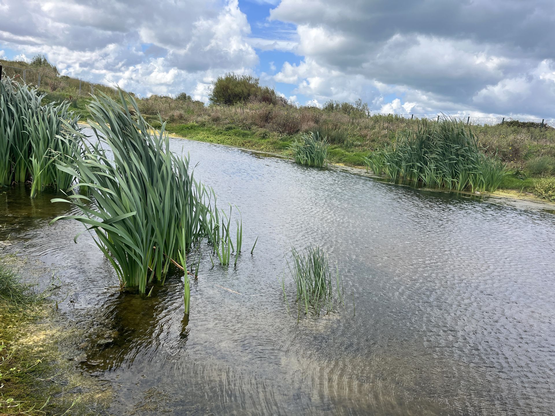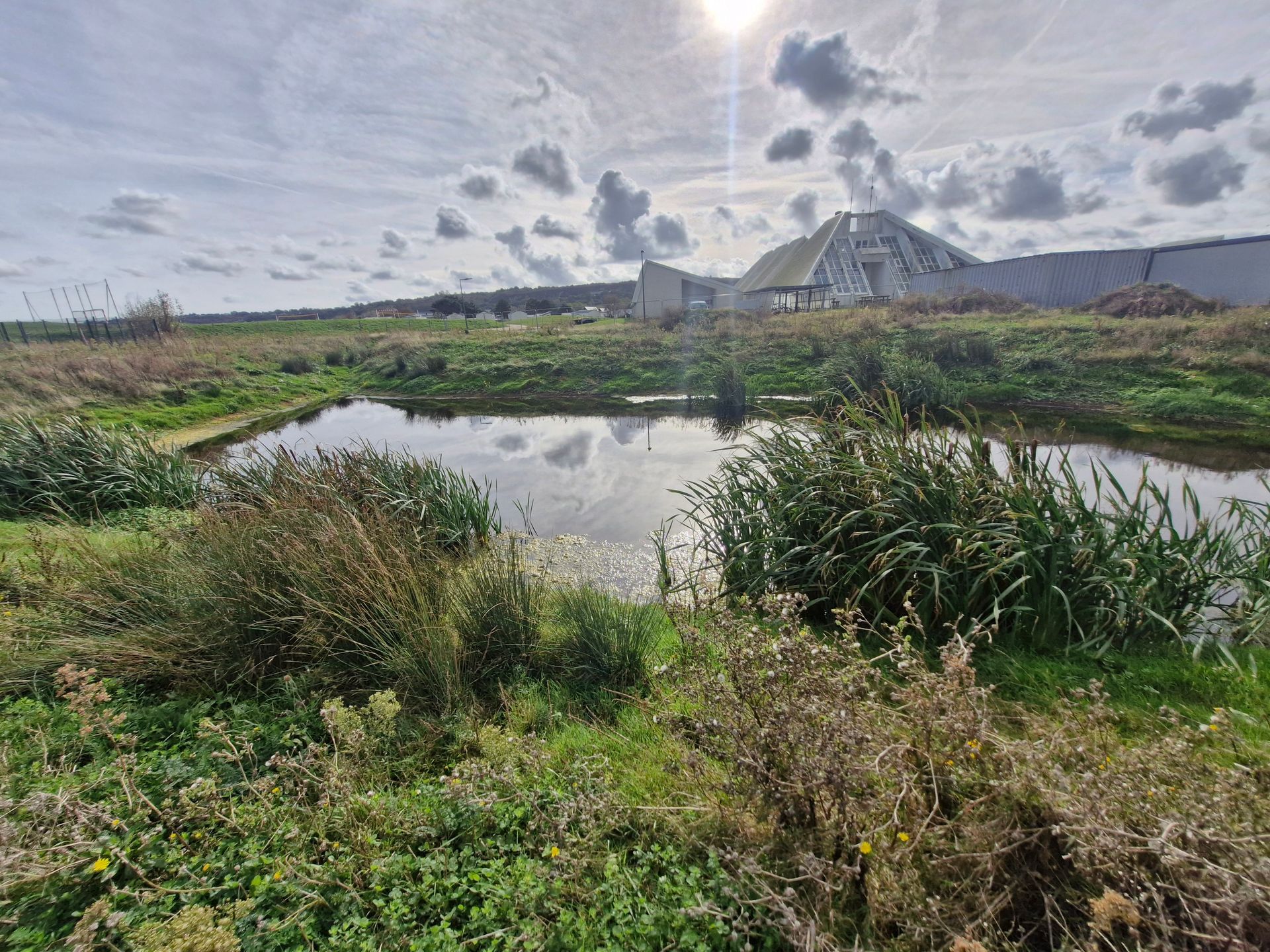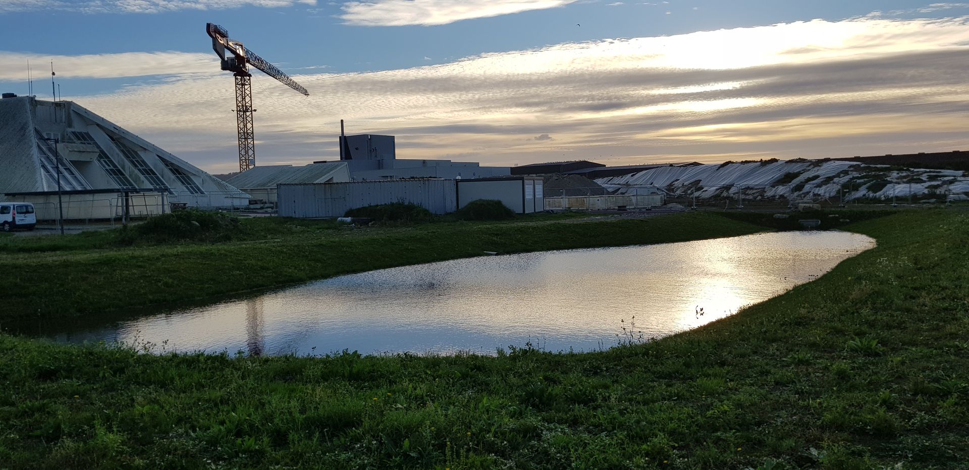 Nous proposons de gérer l’essentiel des eaux pluviales du site (environ 300m3) dans un bassin toujours en eau qui reconstitue l’écologie originelle du site. La quantité d’eau à traiter est réduite grâce à de nombreux revêtements perméables réalisés en stabilisé. Un complexe d’argile et de géotextiles en pente douce permettra la mise en place d’une zone de gestion des eaux à débit régulé. Ce plan d’eau permettra en outre d’attirer sur le site de nombreux oiseaux tels la Bergeronnette flavéole, le Tarier des prés, le Pipit farlouse, l’Alouette des champs, le Bruant des roseaux, le Phragmite des joncs, le Vanneau huppé, le Courlis cendré et dans les zones plus arbustives prendront place le Butor étoilé, la Marouette ponctuée, le Busard cendré, le Busard des roseaux, ou la Gorgebleue à miroir qui recherchent pour établir leur nid des parcelles à végétation dense plus ou moins humides.