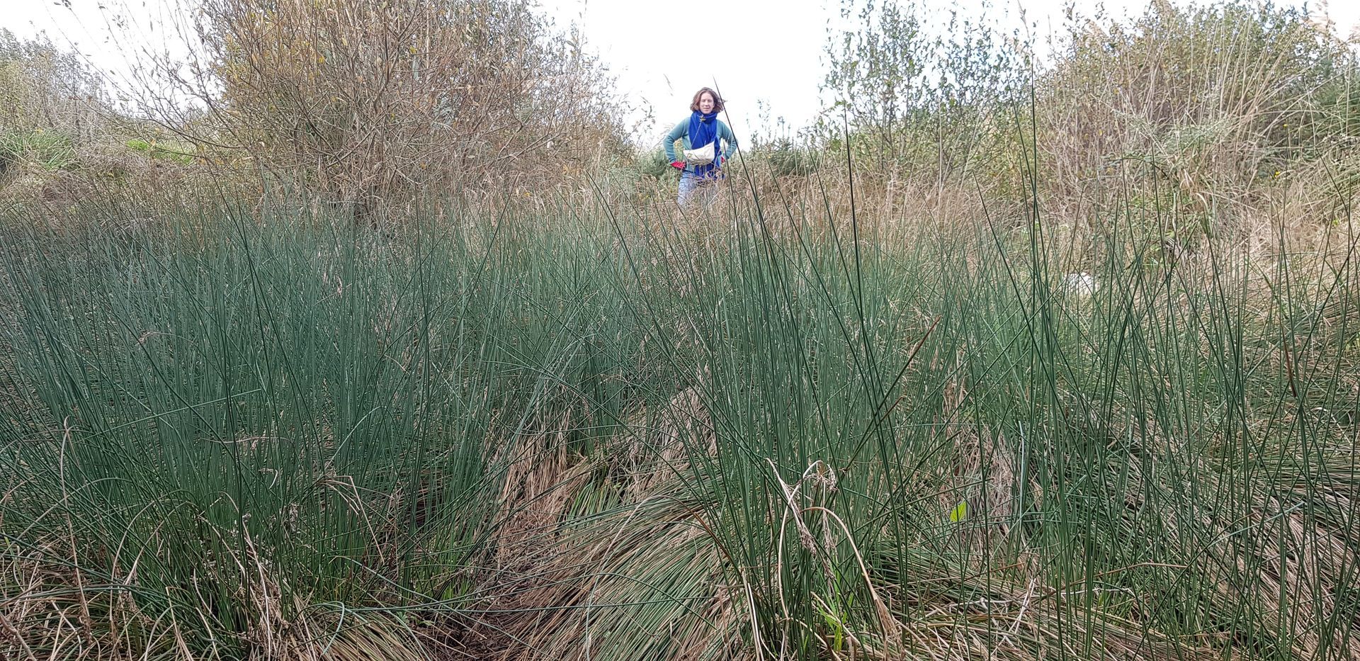 Tout autour de grandes graminées typiques des dunes les oyats Amnophila arenaria et des Elytrigia juncea sont plantées dans 50 cm de sable coquillier. Cela constitue la première association végétale de référence qui pourra accueillir une biodiversité plus importante au fil des ans comme les Euphorbia paralias, les panicauts de mer bleutés Eryngim maritimum et les Liserons soldanelles aux fleurs roses Convolvulus soldanella.