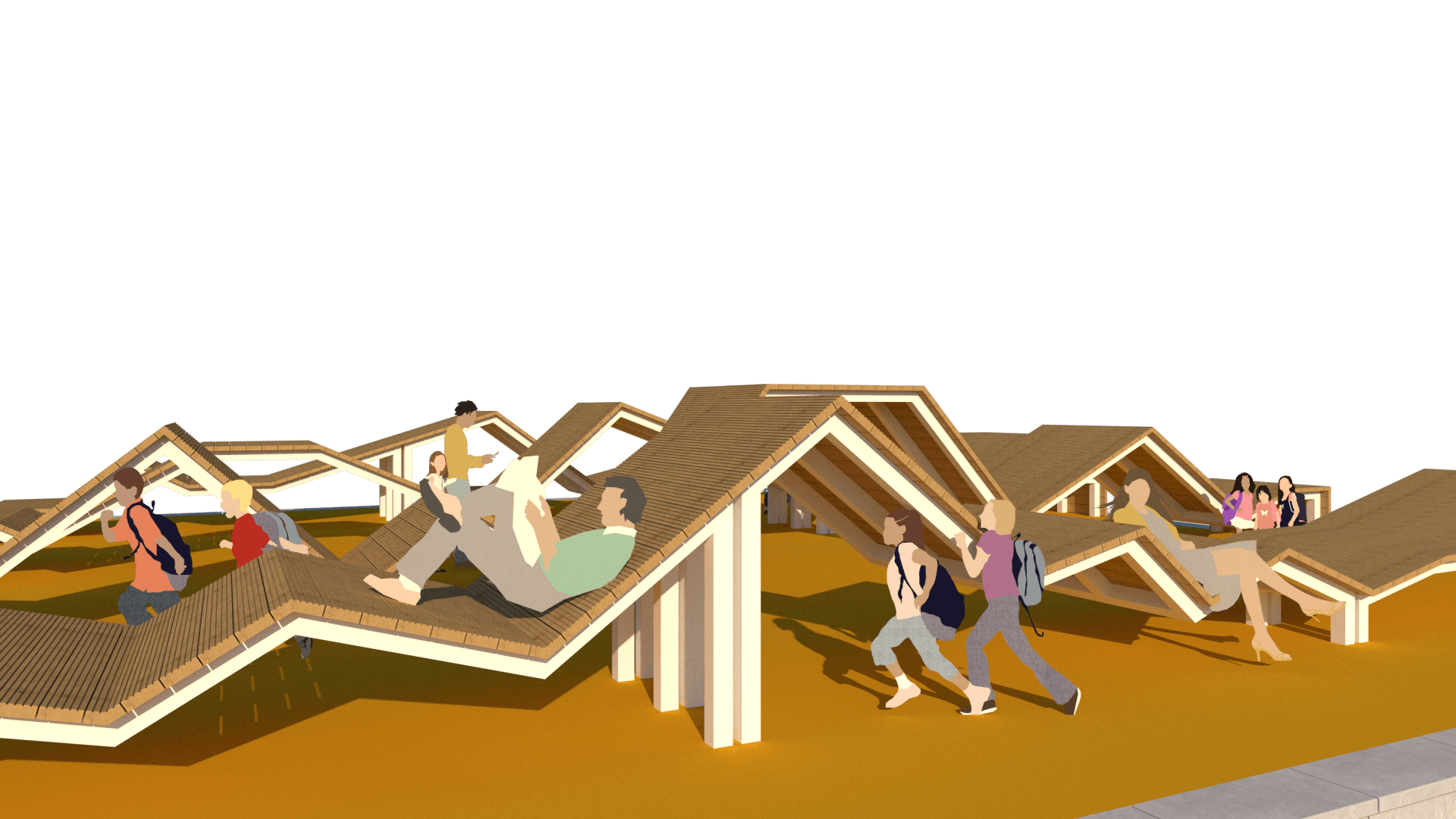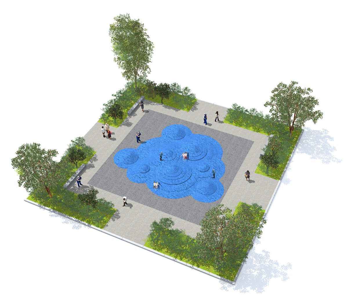 This game of “floating places” will take the unique form of square platforms of varying sizes distributed throughout the narrow, urban part of the park.