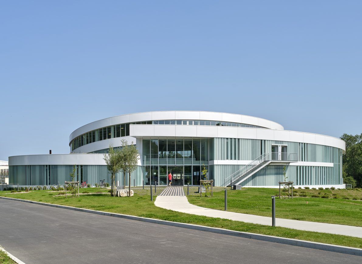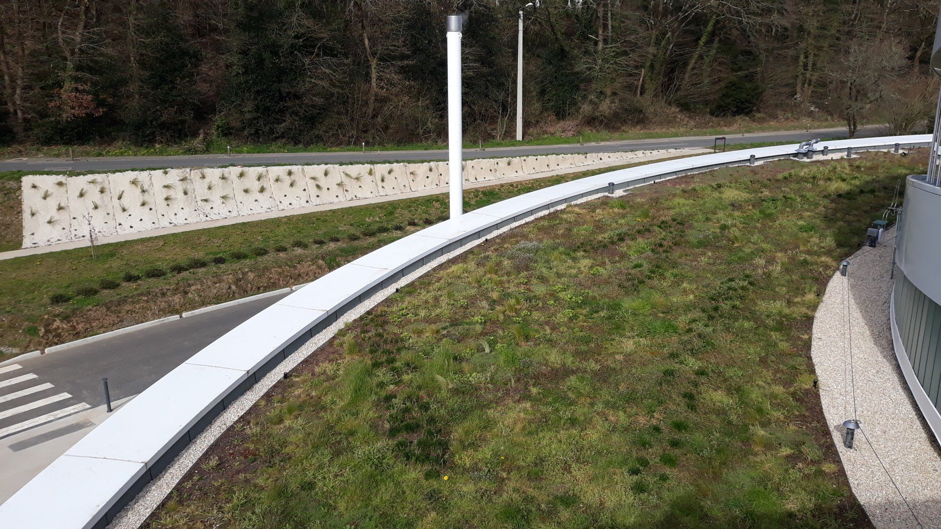 Concept: Concept: The facility blends into the larger landscape thanks to a green roof that wraps around the building. The facility's forecourt is planted, and its parking lot is integrated thanks to the planting of hedgerows on embankments that act as hibernaculums. Totem benches supported by trees constitute living sculptures that welcome users.