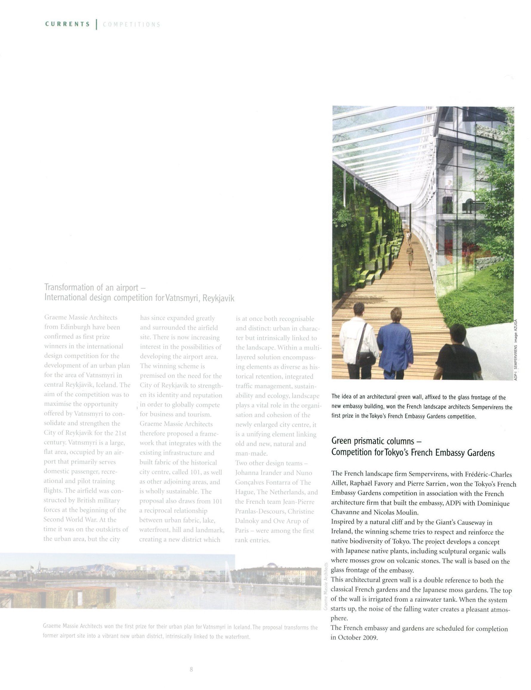 Garden of the new French Embassy in Tokyo, Japan, Prismatic Plant Columns Frédéric-Charles AILLET (dir) with Raphaël Favory and Pierre Sarrien, (0.8 Ha) ADPi, 2016 Realization of an insemination in native plantations and expertise, delivered in 2009, AIA Prize 2012 (American Institute of Architects PRIZE), Victoires du paysage 2014, Japanese BCS (Building Contractors Society) Award 2011;Button -