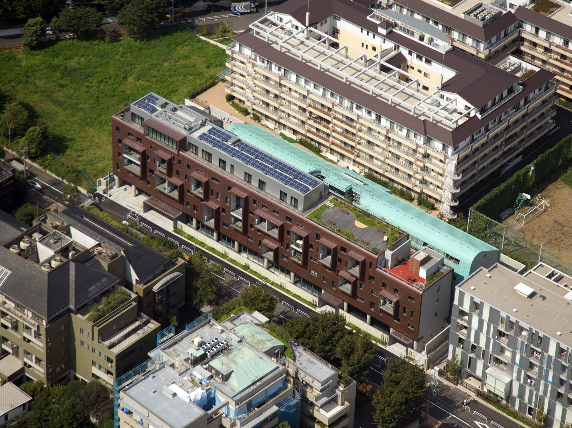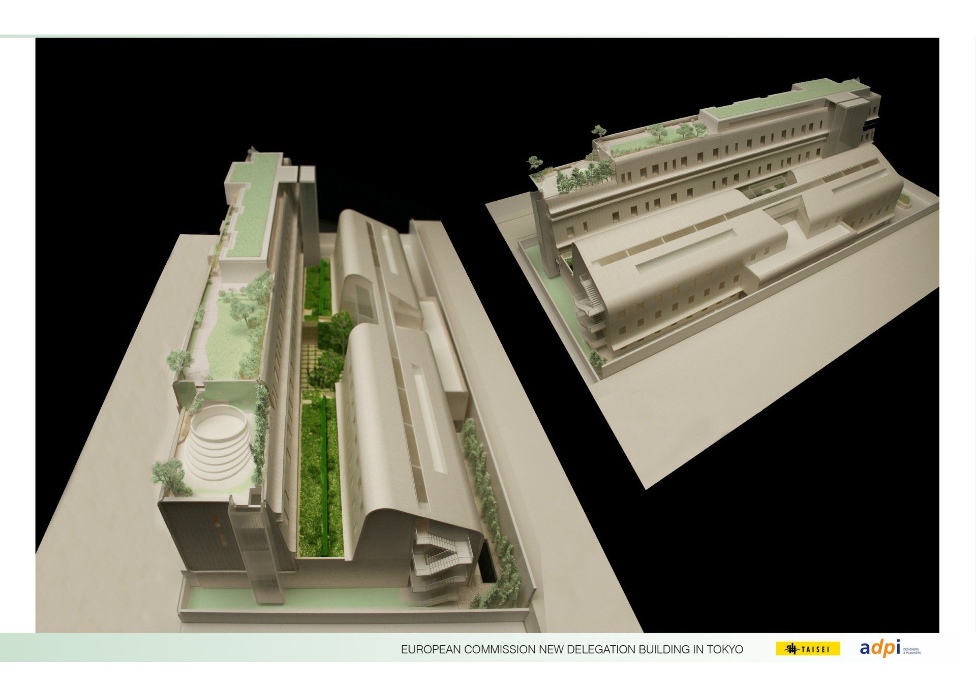 Gestion et épuration des eaux pluviales, spirale végétalisée (schiste sur chant), terrasses plantées avec des plantes indigènes, murs végétaux sculpturaux extensifs, certification HQE CASBEE.