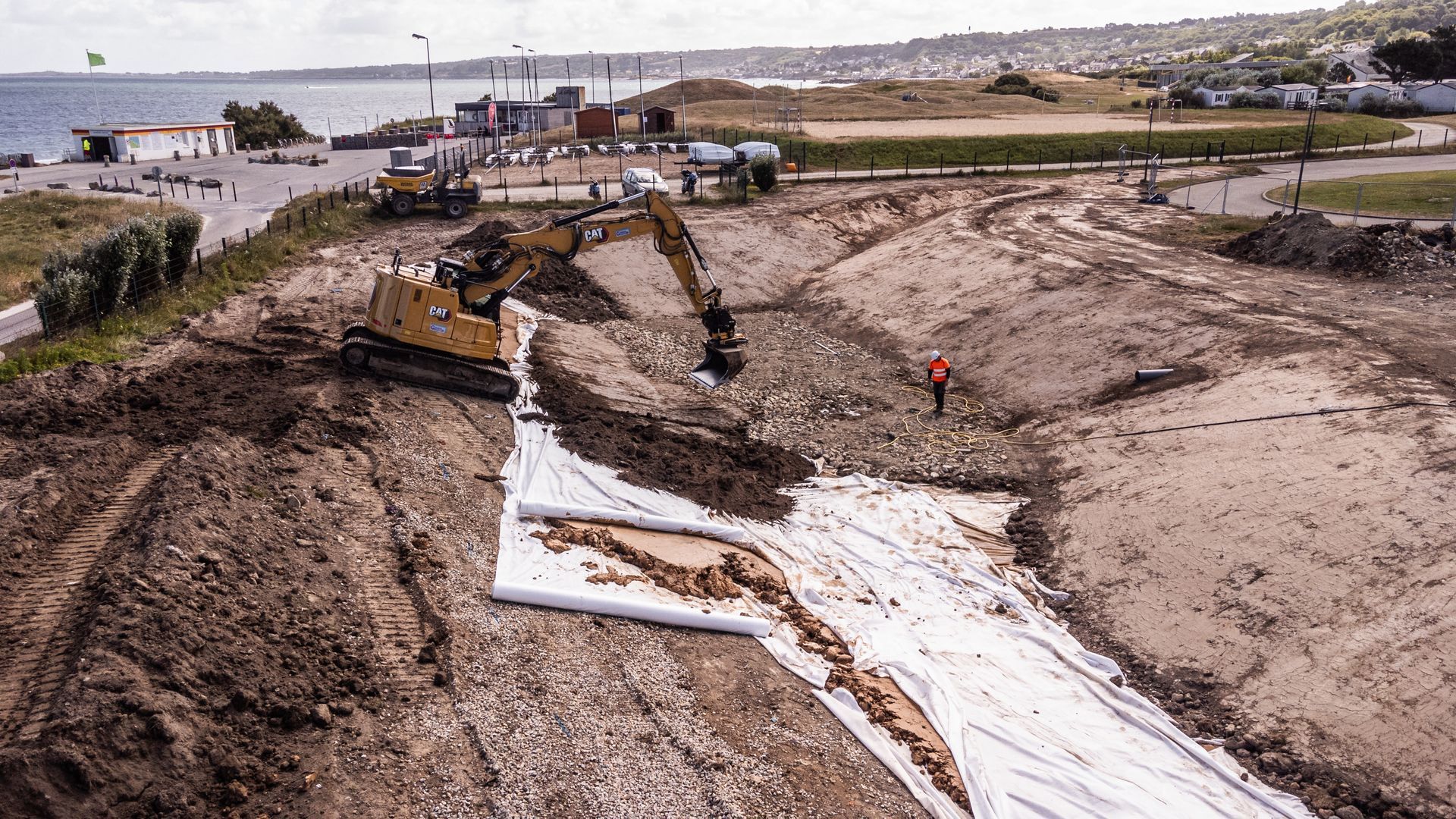 在大型沙丘草的周围,50厘米厚的贝壳砂中种植了海滩草Amnophila arenaria和Elytrigia juncea。这构成了第一个参考植物群落,它将能够在未来几年容纳更多的生物多样性,例如大戟科植物 (Euphorbia paralias)、蓝海刺芹 (Eryngim maritimum) 和粉红花旋花 (Convolvulus soldanella)。
