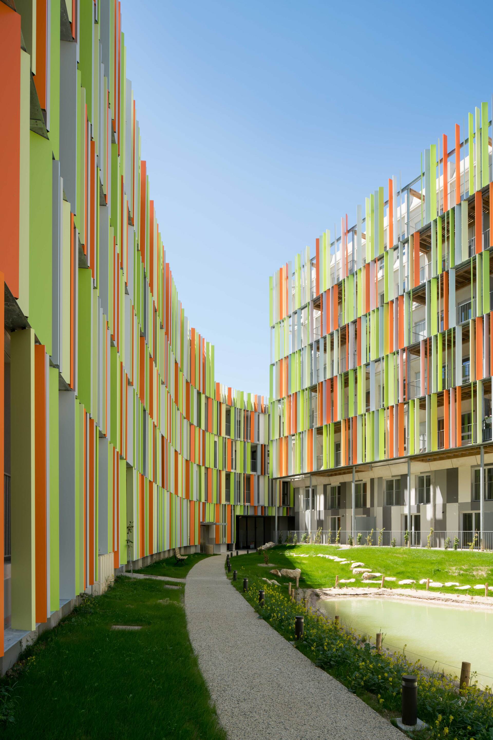 由 Les Senioriales EHPAD 集团管理的 160 套公寓混合项目,底层提供一系列服务(多功能厅、餐厅、办公室)和社会住房。