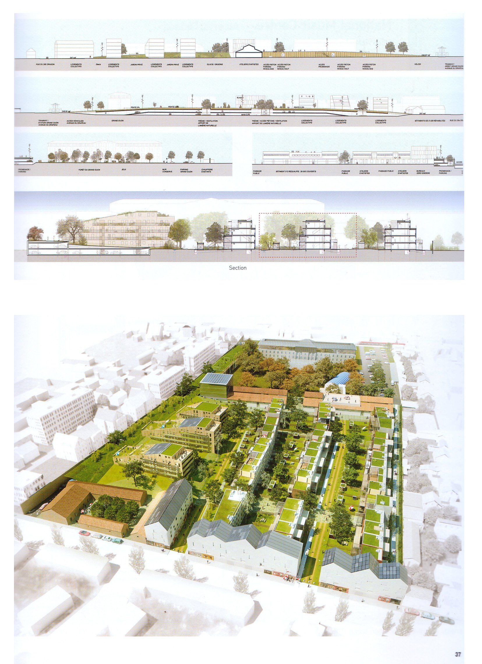 Heudelet 26 生态区城市项目管理:Studio Mustard、主管建筑师和 EXP 建筑师公共空间项目管理:GIRUS BET VRD SEMPERVIRENS Frédéric-Charles AILLET、Raphaël Favory 和 Pierre Sarrien(竞赛、研究 场地总监)概念:我们的城市规划项目位于一处前军事基地上,保留了石头营房,并通过引入多样性来增加基地的密度。当地的石灰质植物被重新种植在整个场地。面积:50,000 平方米 估价:3,100,000 欧元(不含增值税)(景观 VRD) 项目管理:SEMAAD 竞赛获胜者 2009 年 4 月,完成任务按钮 -