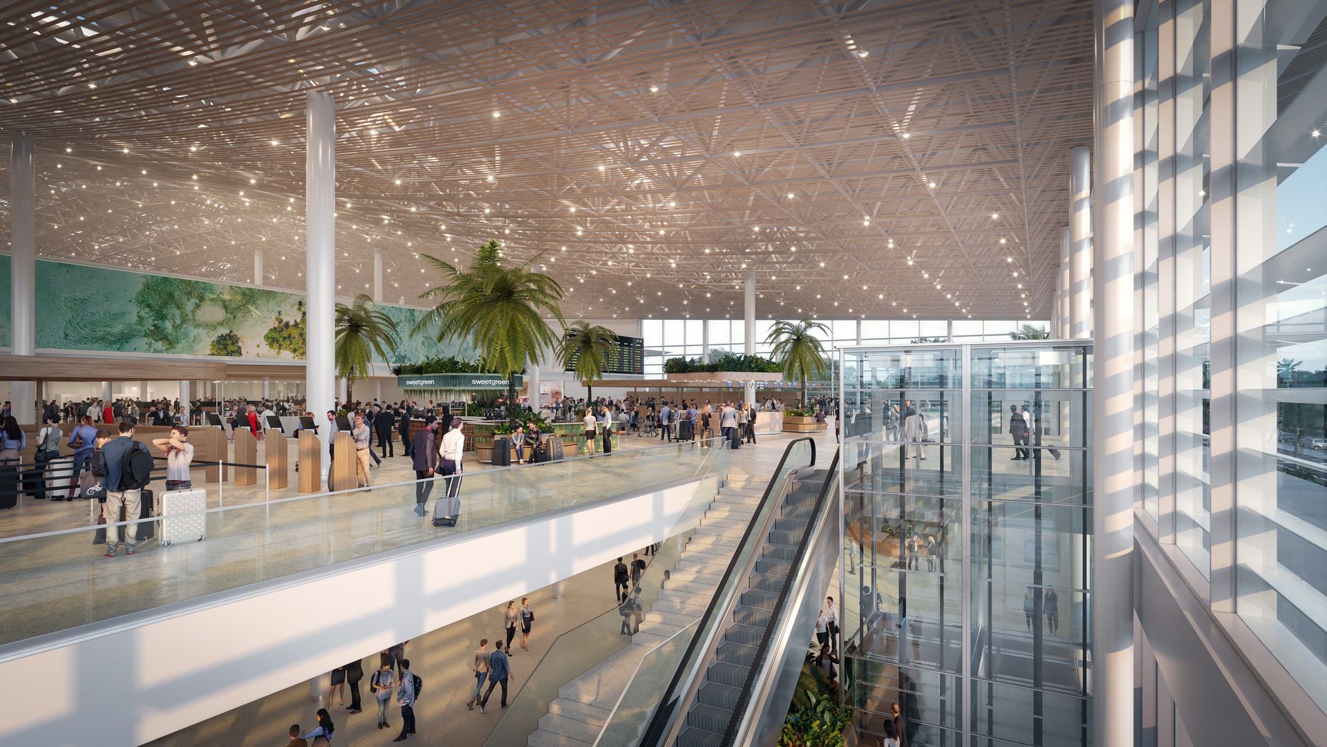 内部庭院将种植低耗水植物,以应对机场内部空调的挑战。