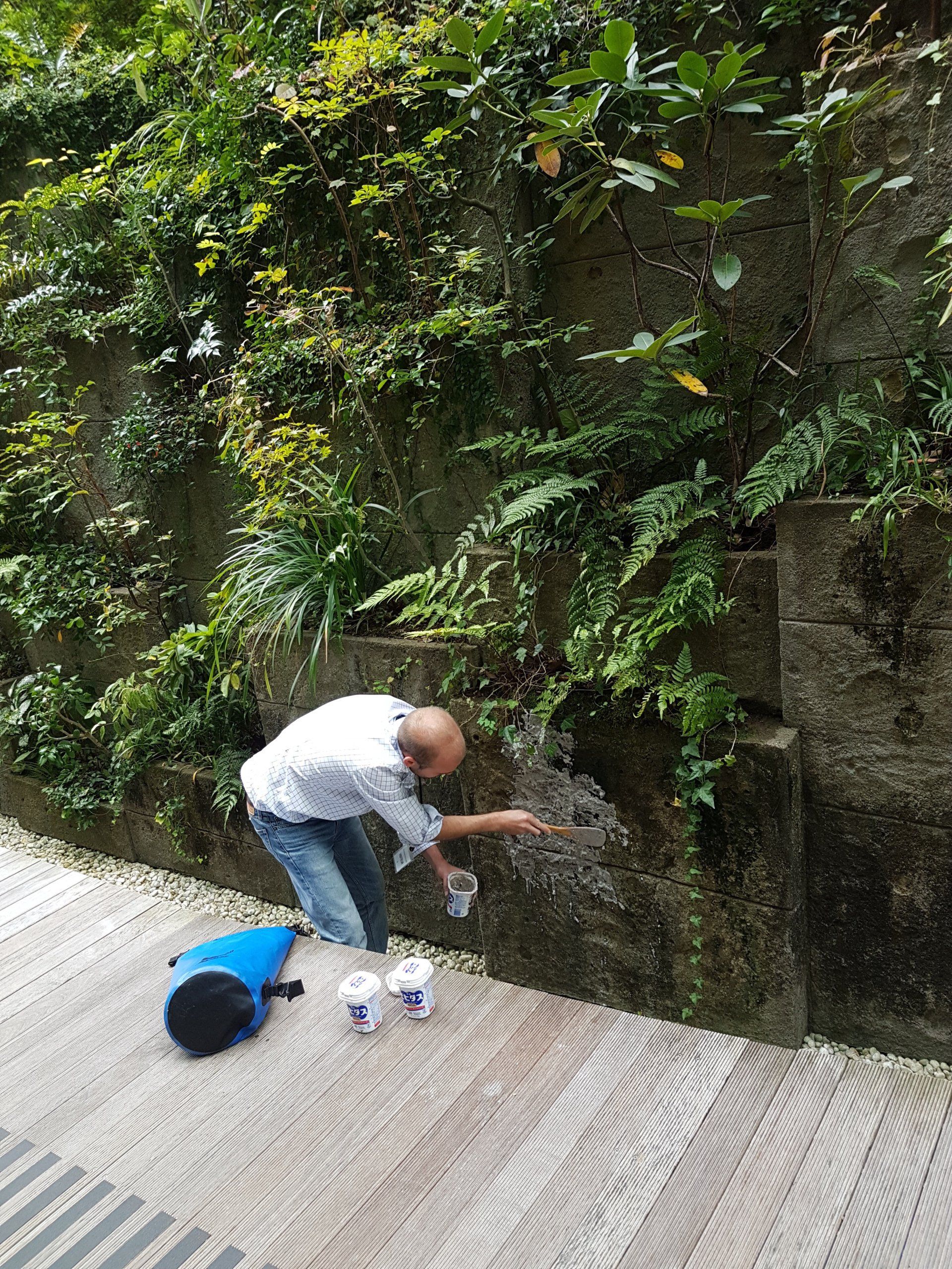 为了确保墙的可持续性,其操作保持非常简单。这种表面涂层也是对植物定植条件进行详细研究的结果,这使得我们在生产测试原型时确定了粒度和 pH 值。因此,目标是汇集启动自然殖民的条件。我们让大自然发挥其作用。