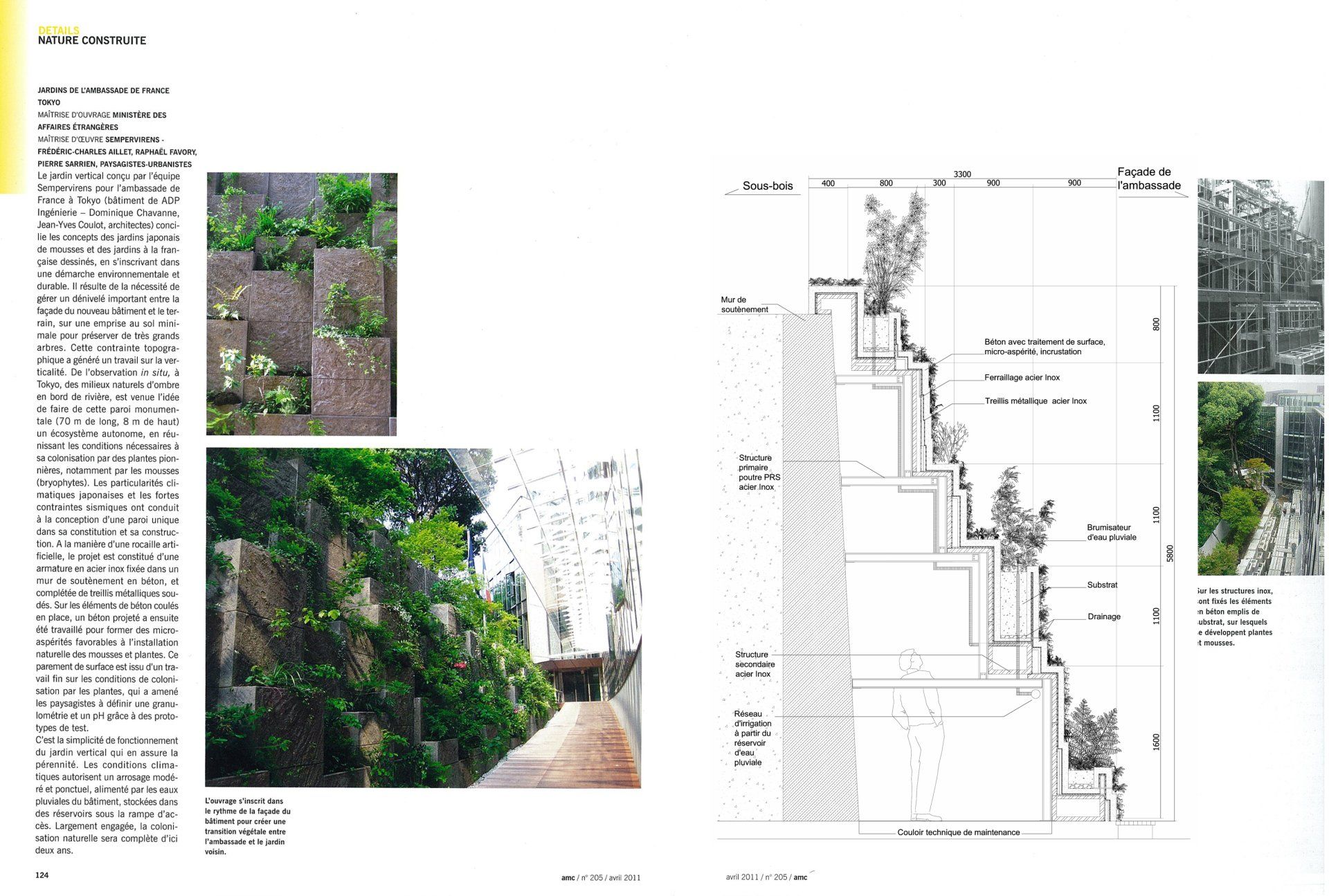 日历 : 2009 年交付 - 2018 年项目跟进和苔藓植物实施团队 : Takenaka、ADPi Dominique Chavanne、Nicolas Moulin、Mabel MirandaSEMERVIRENS 团队: Frédéric-Charles AILLET(指导:竞赛、研究、建筑工地)、Raphaël Favory 和 Pierre Sarrien(Coauteurs)、Mihaela stanescu、Floriand Vadjoux、Sylvain Combaluzier。